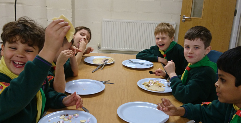 Flour, milk, eggs and lots of fun! That was the theme for last nights activities at Cubs, Scouts and Explorers. With an evening of pancake making which included preparing, cooking and lots of eating.